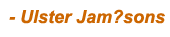 Fáilte to our study of Some Jam?sons connected with early Ulster, in Ireland. This is a private and limited access website, intended for the collaborative use of participating genealogists and like-minded family members, as a working area to collect and study our pre nineteenth century Jam?son family roots for those of us from Ulster, Ireland. And then to share this information amongst ourselves and for anyone else. If you are a descendant of an Ulster Jam?son family and and can demonstrate a need to view the information contained herein - we would like ask you to join us in our quest to better identify and/or understand our families. Please contact us for information on how to join this effort. |